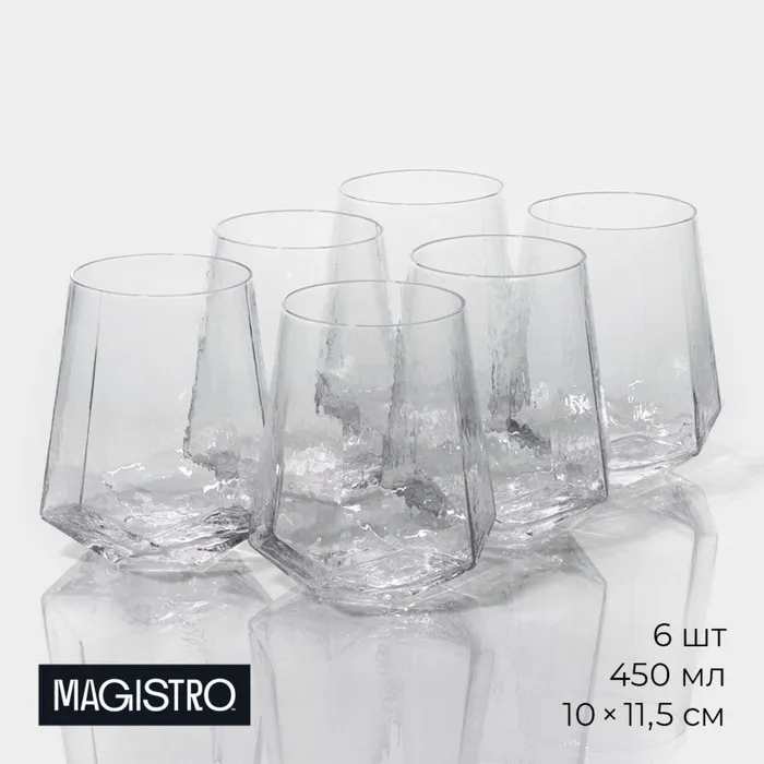 Стаканы Magistro «Дарио», 450 мл, 10×11.5 см, набор 6 шт., стекло, прозрачные