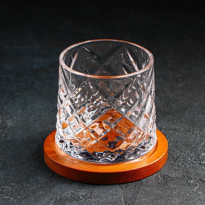 Стакан для виски «Торн», 250 мл, на деревянной подставке, стекло