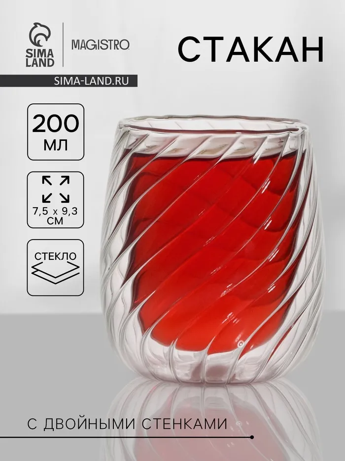 Стакан Magistro «Вихрь», 200 мл, с двойными стенками, стекло, прозрачный