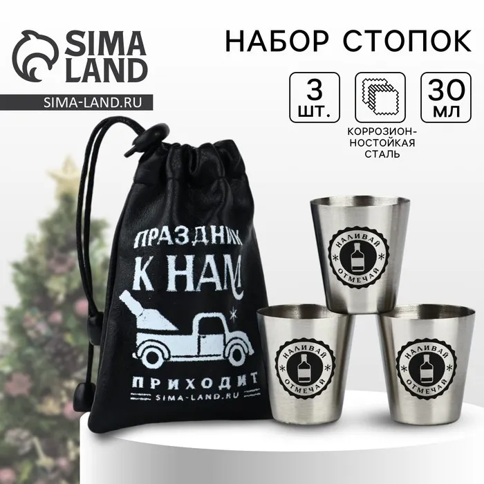 Стопки новогодние в чехле «Праздник», 3 шт. х 30 мл