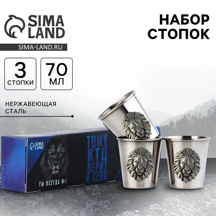 Стопки в чехле «Мужской стандарт»: нержавеющая сталь, набор 3 шт. х 70 мл