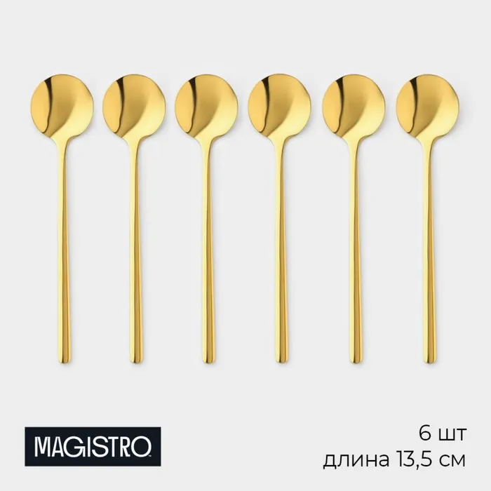 Набор чайных ложек Magistro Desire, длина 13.5 см, 6 шт., нержавеющая сталь, золотистый