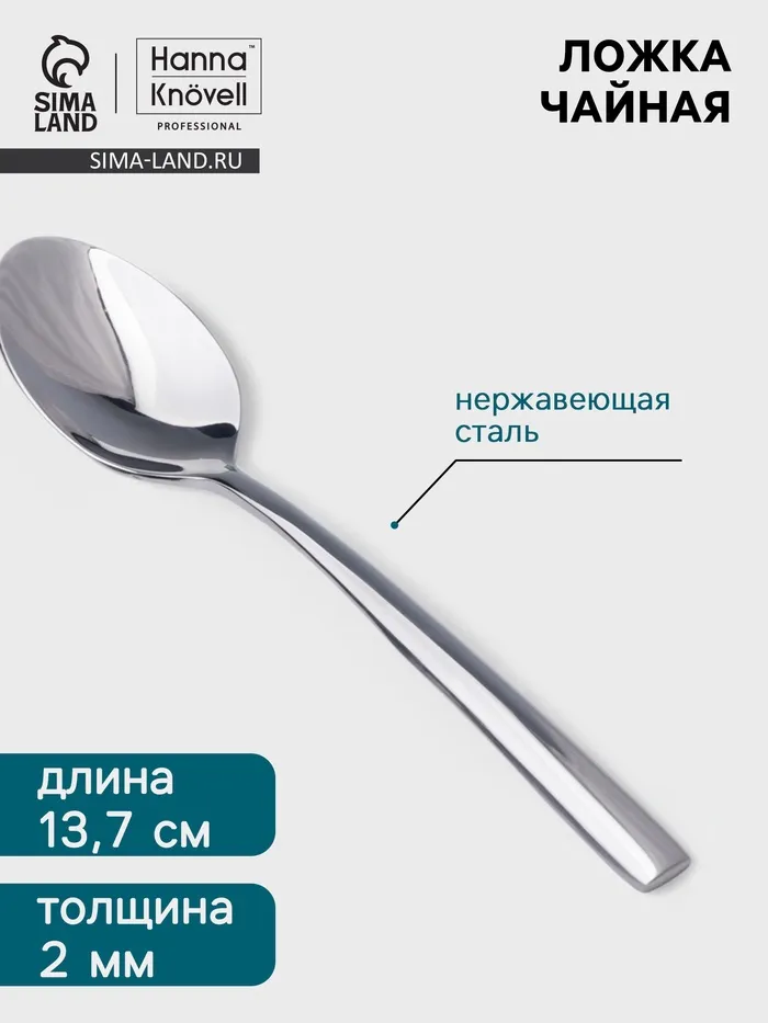 Чайная ложка Hanna Knövell Eman, 13.7 см, толщина 2 мм, нержавеющая сталь, серебристая