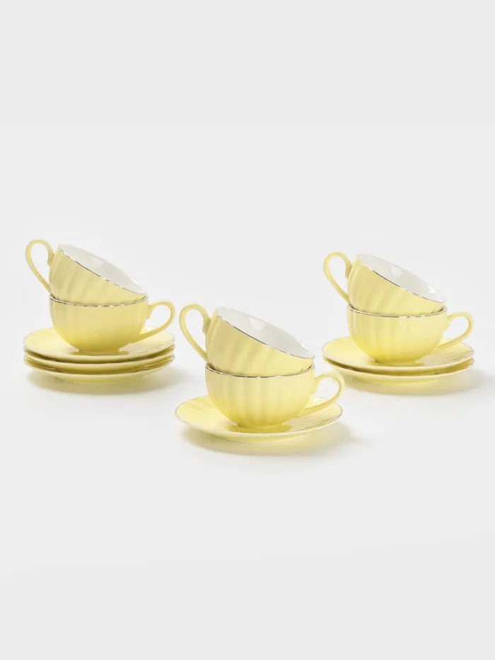 Сервиз чайный Доляна «Вивьен», 12 предметов: 6 чашек 200 мл, 6 блюдец d=15 см, фарфор, жёлтый