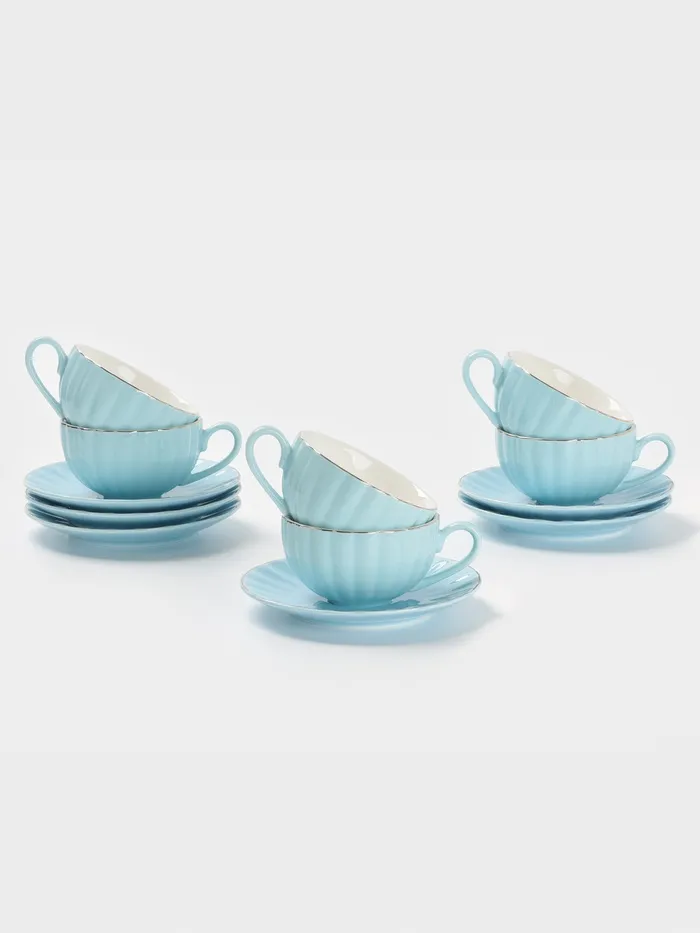 Сервиз чайный Доляна «Вивьен», 12 предметов: 6 чашек 200 мл, 6 блюдец d=15 см, фарфор, голубой