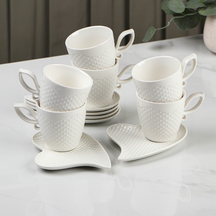 Сервиз чайный «Лист папоротника», 12 предметов: чашка 200 мл, блюдце d=14 см, стеклокерамика, цвет белый