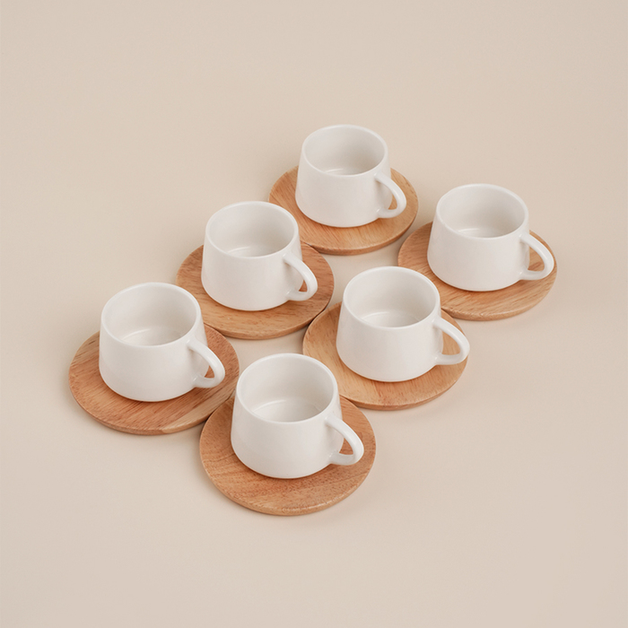 Сервиз чайный фарфоровый SL Home «Тренто», 12 предметов: 6 чашек 90 мл, 6 деревянных подставок