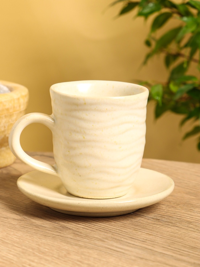 Чашка с блюдцем «Камень 2», 13×13×10 см, керамика, бежевая в крошку