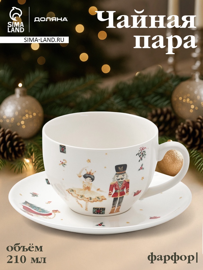 Чайная пара новогодняя «Сказочный бал.Щелкунчик», 2 предмета: чашка 210 мл, блюдце d=15.5 см, фарфор, белая
