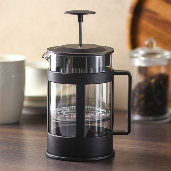 Чайник заварочный френч-пресс Доляна «Классика», 350 мл, стекло, чёрный
