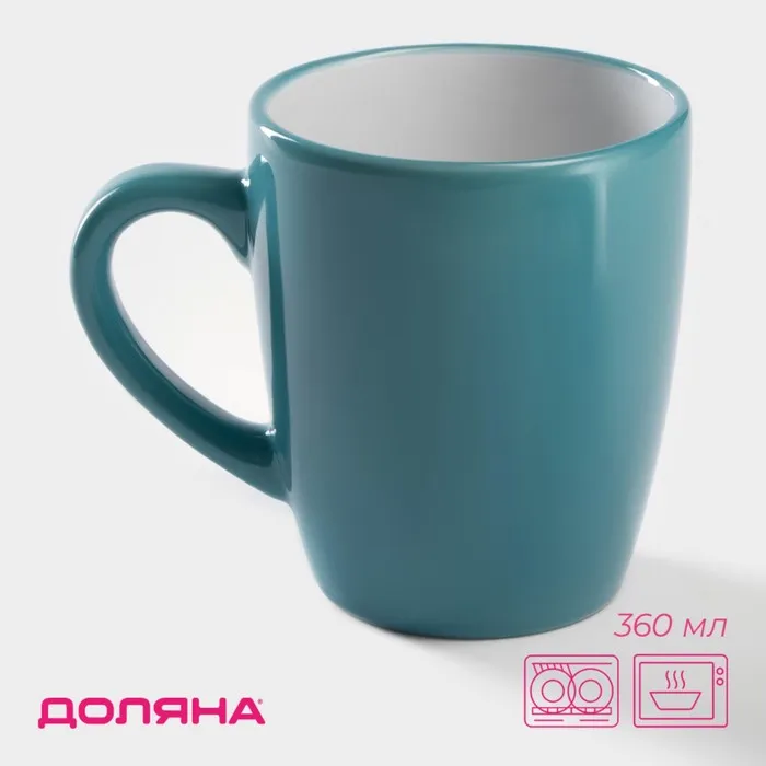 Кружка Доляна «Дымка», 360 мл, керамика, бирюзовая