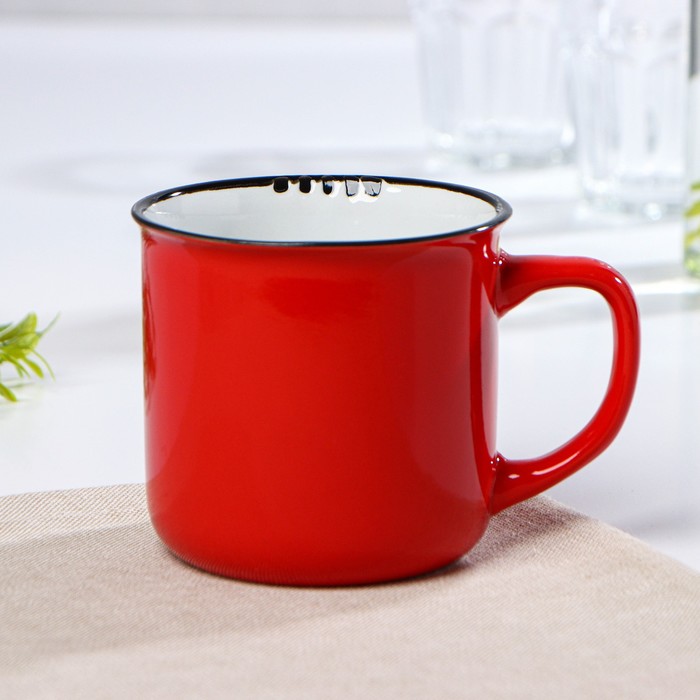 Кружка керамическая Доляна «Эмаль», 340 мл, цвет красный