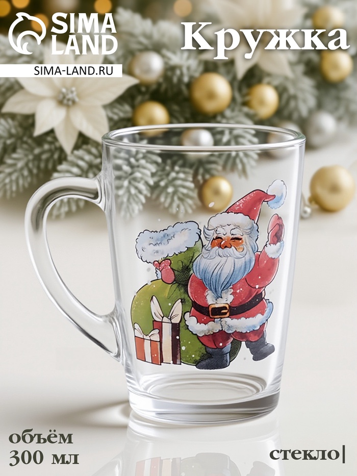 Кружка "Каппучино. Новый год", 300 мл, стекло, рисунок МИКС