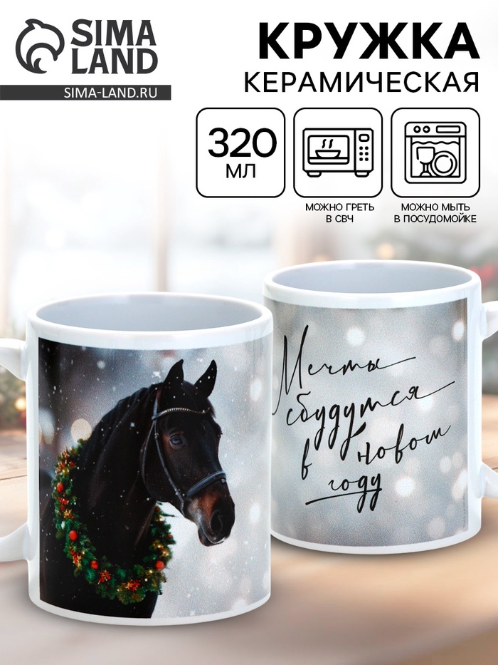 Кружка керамическая новогодняя «Мечты сбудутся в новом году», 320 мл