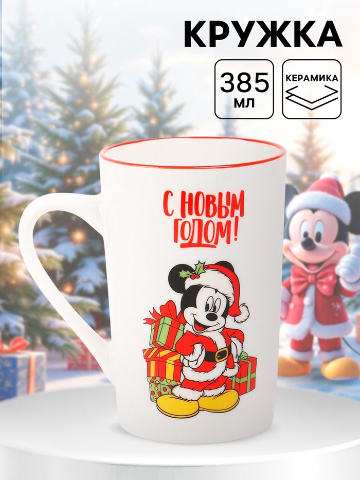 Кружка керамическая новогодняя, 385 мл, Микки Маус
