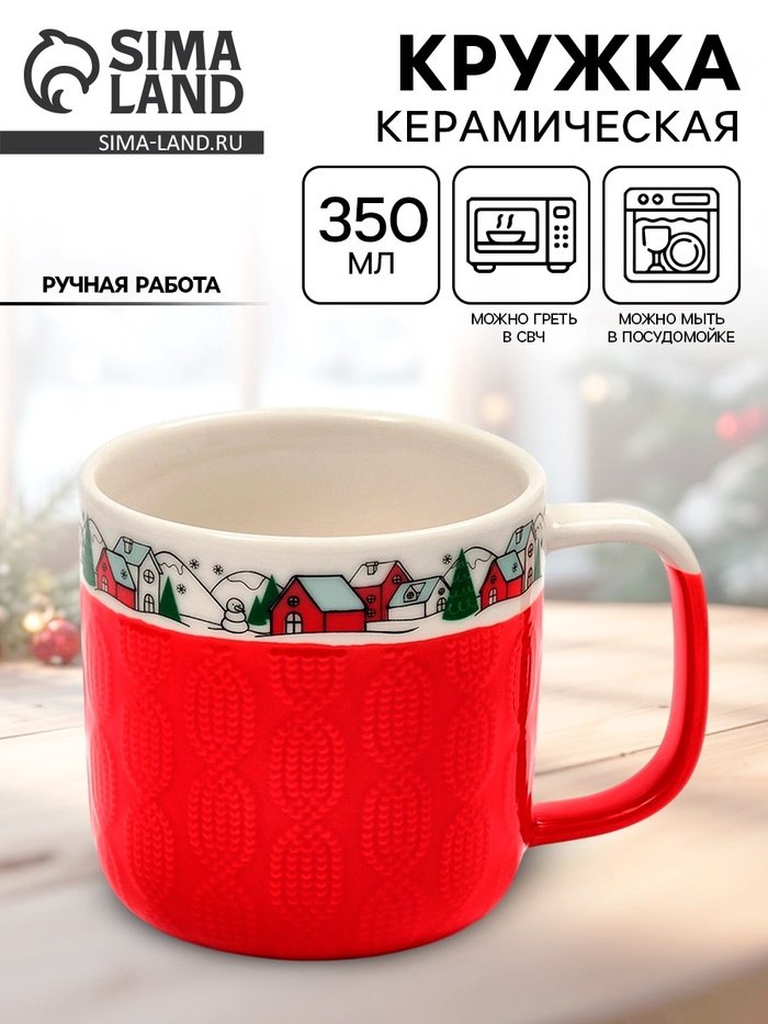 Кружка керамическая «Новогодняя деревушка», 350 мл, ручная работа