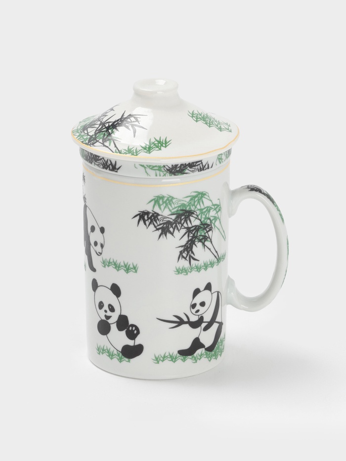 Кружка керамическая с крышкой и ситом «Панды», 300 мл, цвет белый