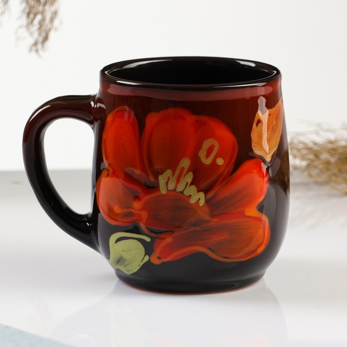 Кружка Псковский гончар «Мак на чёрном», 350 мл, чёрная