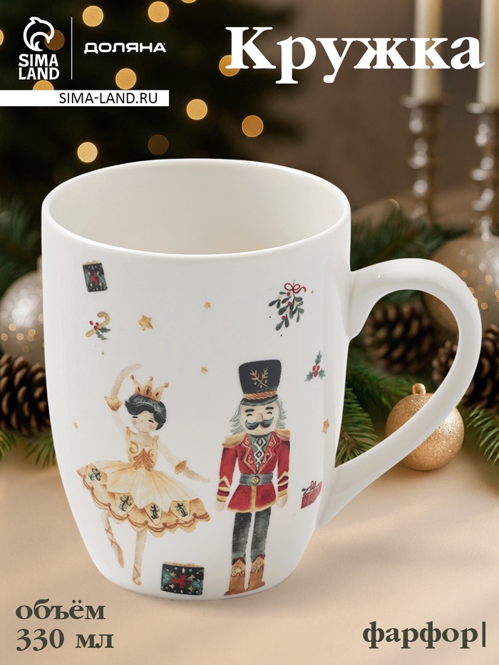 Кружка новогодняя Доляна «Сказочный бал.Щелкунчик», 330 мл, фарфор, белая