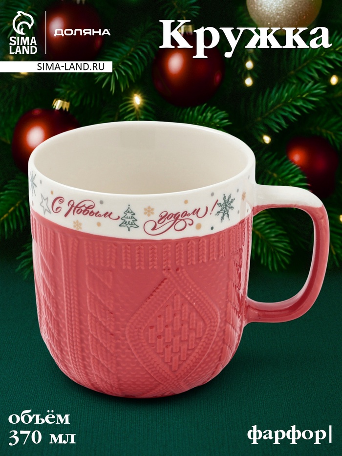 Кружка новогодняя Доляна «Праздничное настроение», 370 мл, фарфор, красная