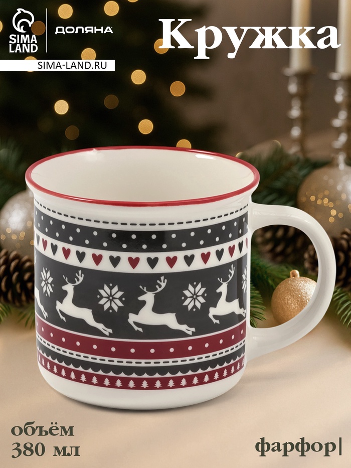 Кружка Доляна «Новый год. Олени», 380 мл, фарфор, белая