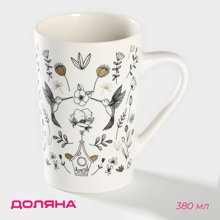Кружка Доляна «Колибри», 380 мл, фарфор, цвет белый