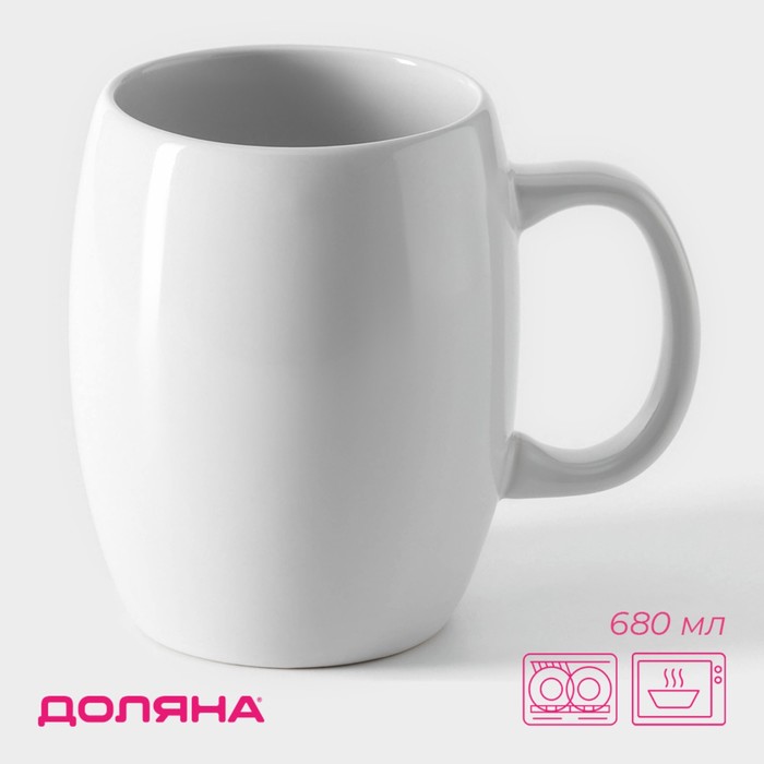 Кружка керамическая Доляна «Классика», 680 мл, 14×10×12.6 см, цвет белый
