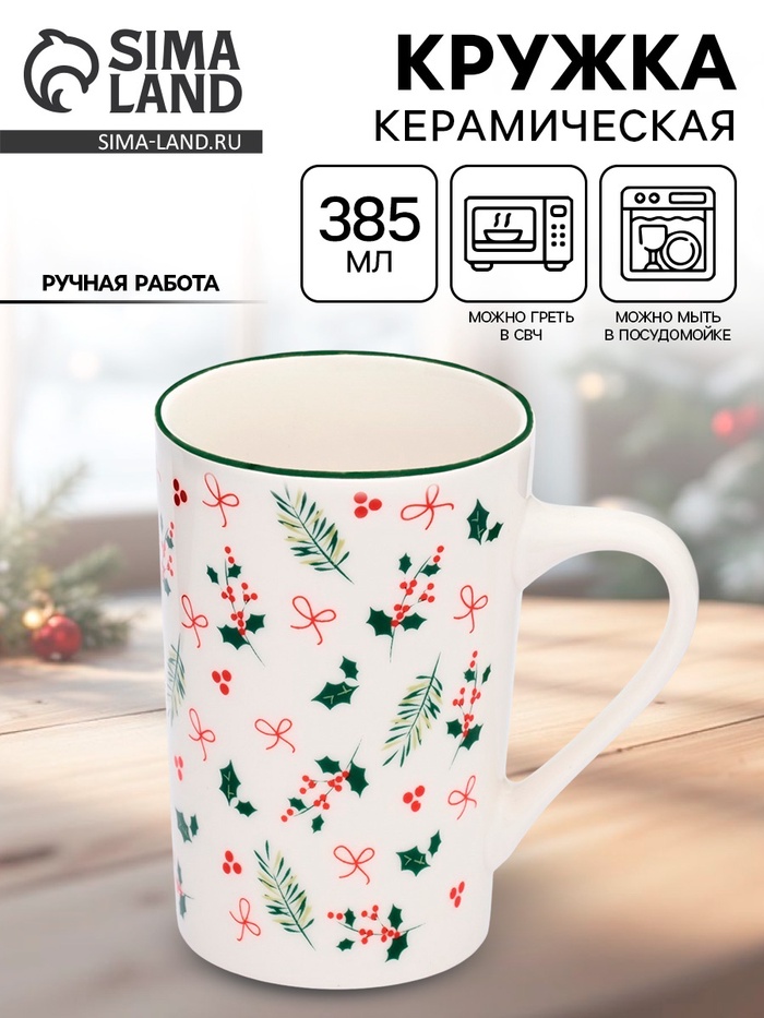 Кружка новогодняя керамическая «Еловые веточки», 450 мл
