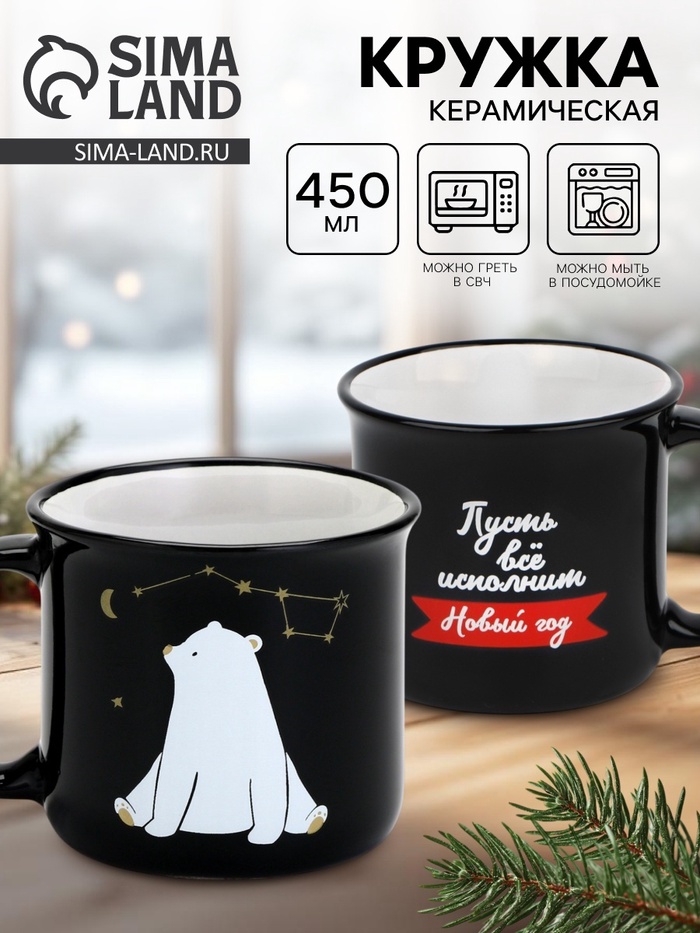 Кружка керамическая, новогодняя «Пусть все исполнит Новый год», 450 мл