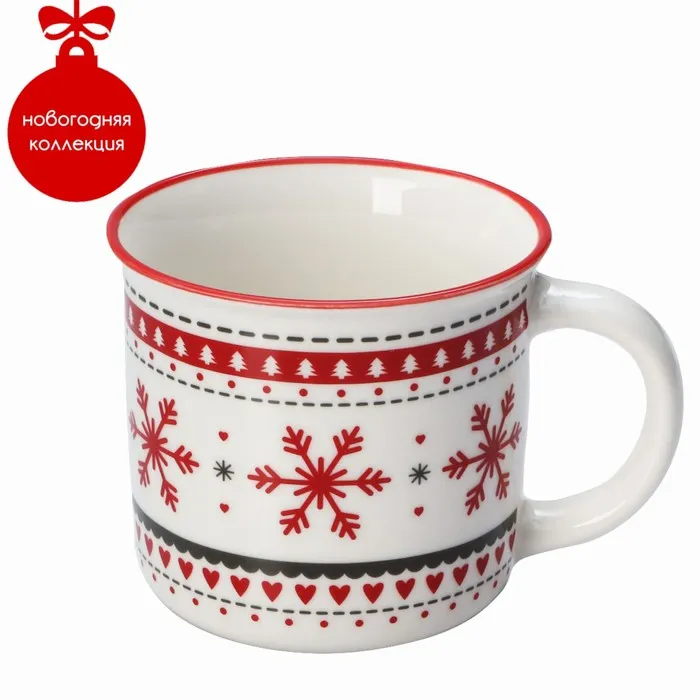 Кружка Доляна «Новый год, Снежинки», 380 мл, 13×10×8.7 см, фарфор, белая