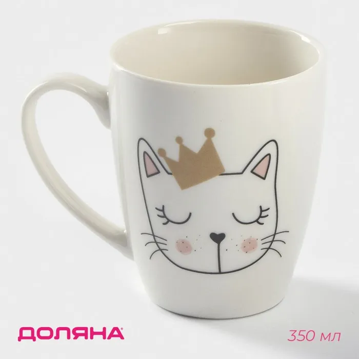 Кружка Доляна «Принцесса Мяу», 350 мл, фарфор, белая