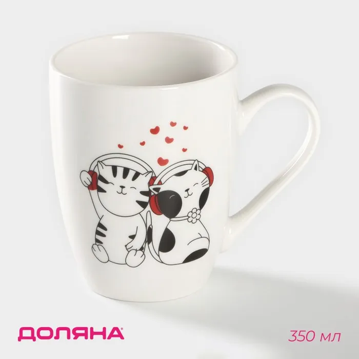 Кружка Доляна «Котики меломаны», 350 мл, фарфор, белая