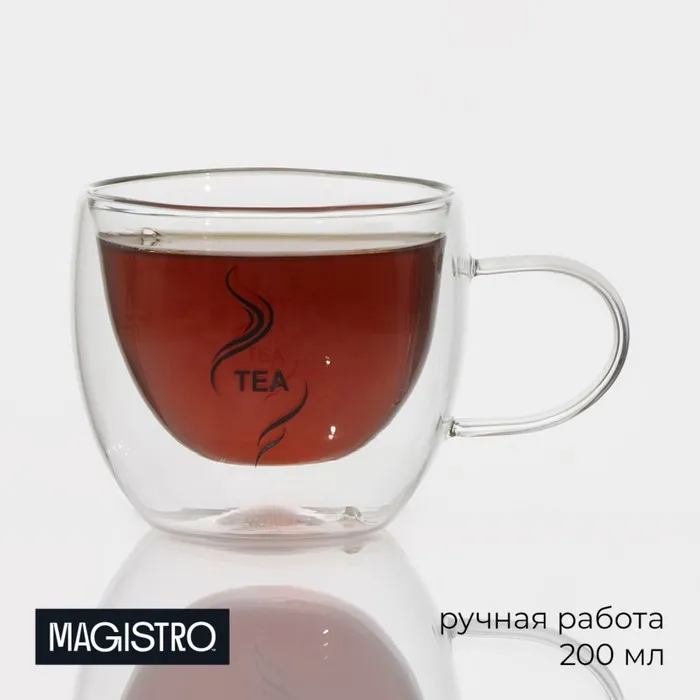 Кружка с двойными стенками Magistro «Дуо. Tea», 200 мл, 12.5×9×7.5 см, стекло, прозрачная
