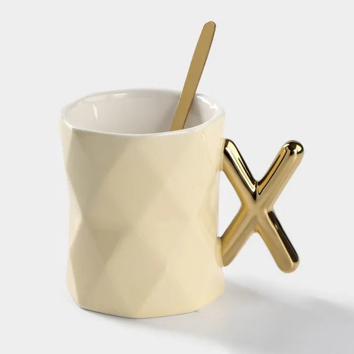 Кружка керамическая с ложкой «Луи», 250 мл, цвет МИКС