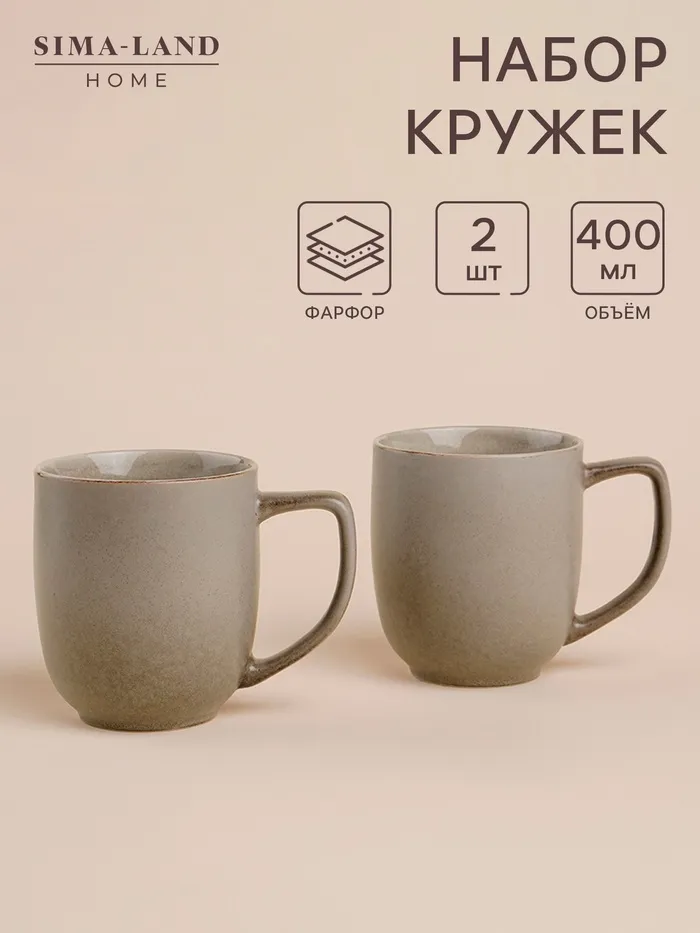 Набор кружек SL Home «Мольвено», 400 мл, фарфор, 2 шт., серый