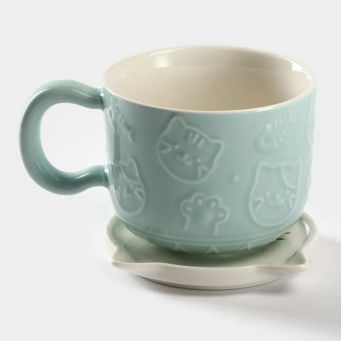Кружка керамическая «Улыбающийся кот», 450 мл, цвет голубой
