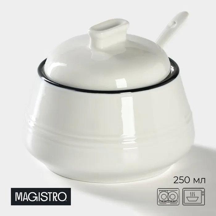 Сахарница Magistro «Бланш», 250 мл, с крышкой, фарфор, белая