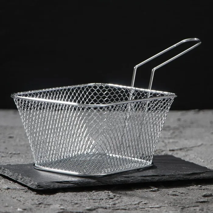 Корзинка для картофеля фри Доляна «Квадро», мелкая сетка, серебристая