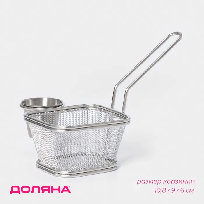 Корзинка для картофеля фри Доляна «Лонгфилд», 10×8×7.5 см, с соусником d=5 см, серебристая