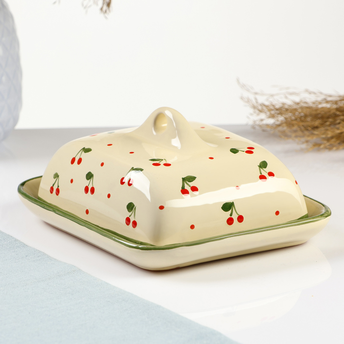 Маслёнка Доляна «Гранат», 17,2×12,4×8,5 см, цвет красный и белый