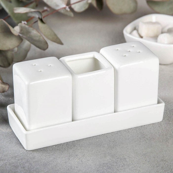 Набор для специй "Рубикон", 2 предмета, белый, керамика, 6.5х6.5х8.7 см