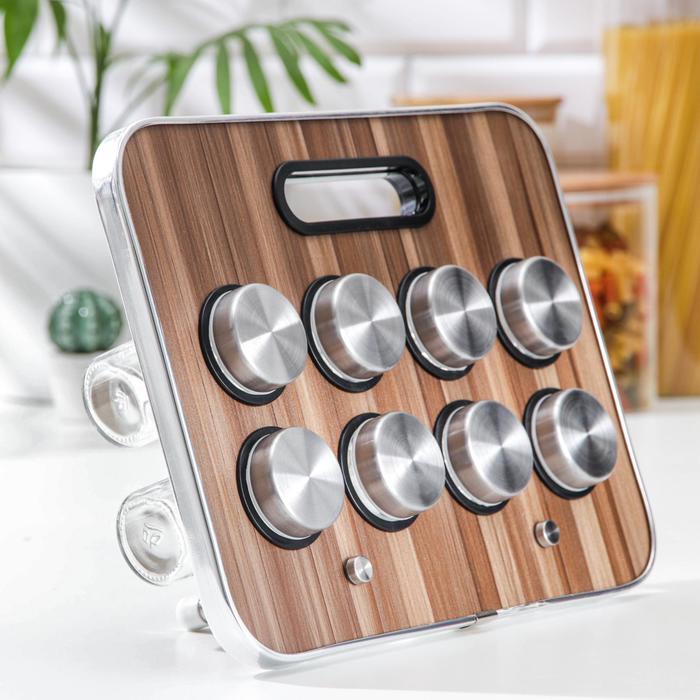 Набор для специй на подставке «Модерн», 29×12×18,5 см, ёмкость, 90 мл, 4×9,5 см, 8 шт