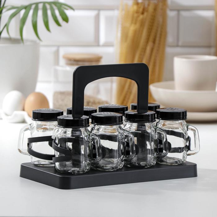 Набор для специй из стекла на подставке «Специи», 120 мл, 7,5×5×8,5 см, 8 шт, цвет чёрный
