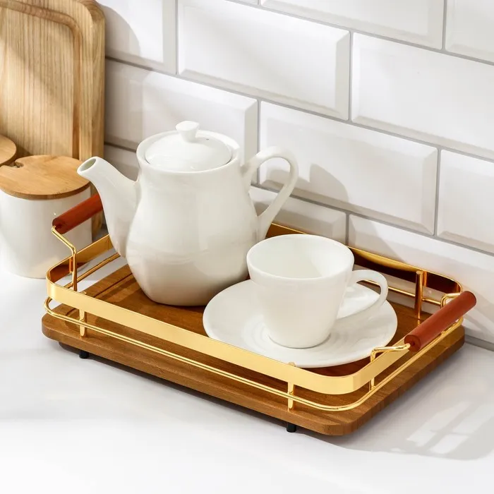 Поднос деревянный фигурный для завтрака, 40×25 см, со вставкой