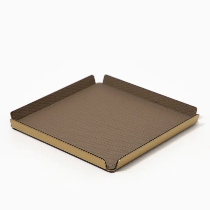 Поднос декоративный квадратный, металл и экокожа, 12×12 см, коричневый