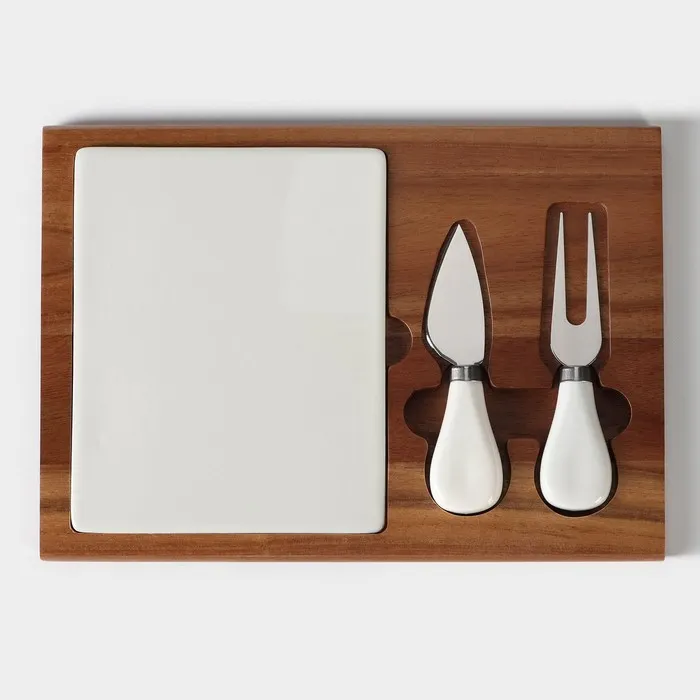 Набор для подачи сыра Magistro Shape, 2 ножа, доска, акация