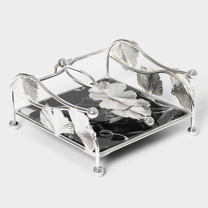 Салфетница «Цветы», 15×15×8,5 см, цвет серебряный