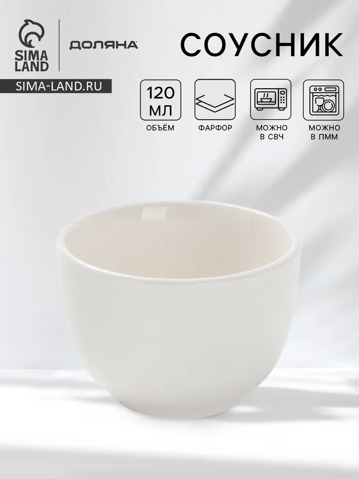 Соусник фарфоровый «Классика», 150 мл, 10×3,5 см, цвет белый