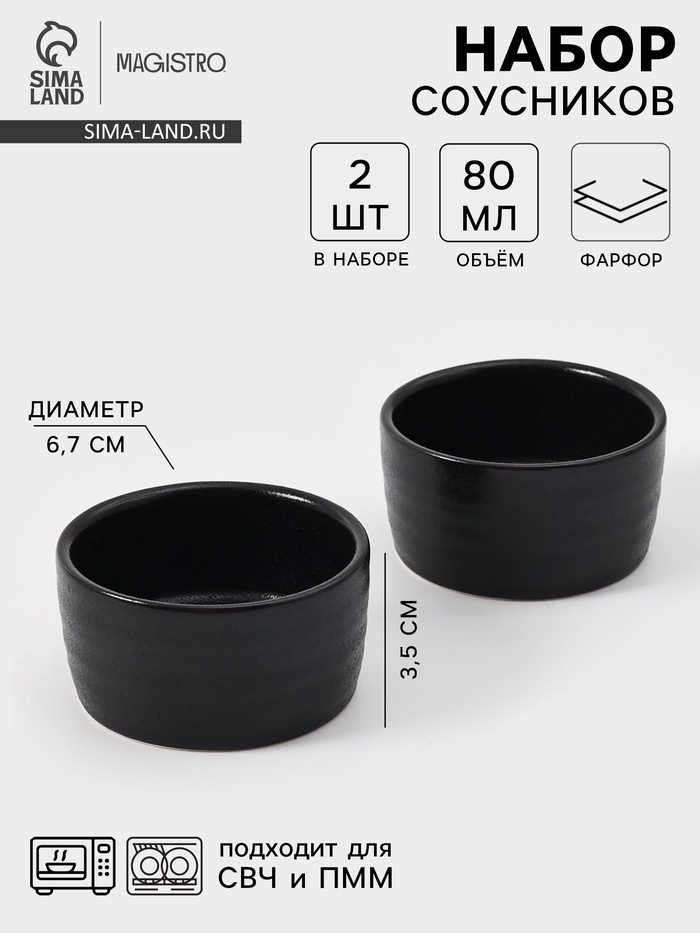 Соусники Magistro Pietra lunare, набор 2 шт., 80 мл, фарфор, чёрные