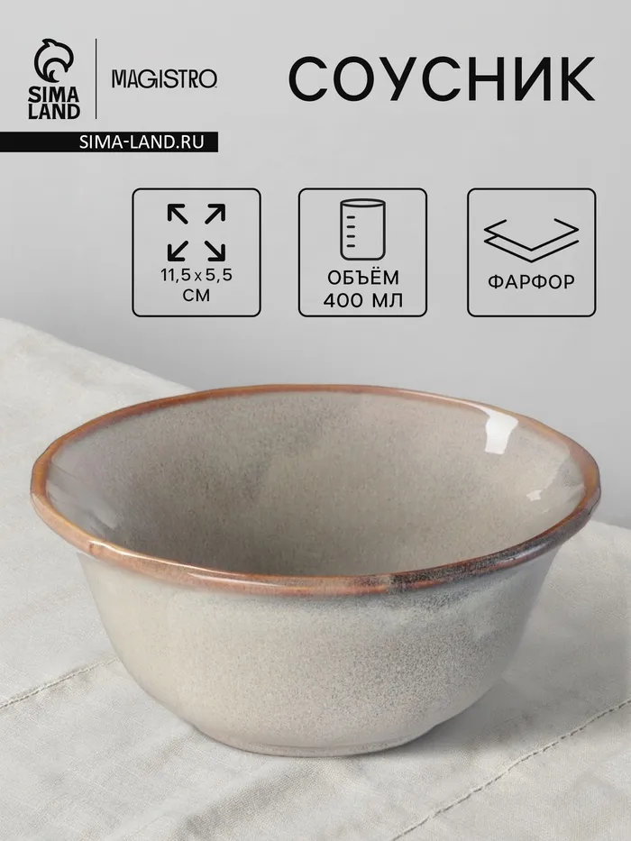 Соусник Magistro Vintage, 11.5×5.5 см, фарфор, серый